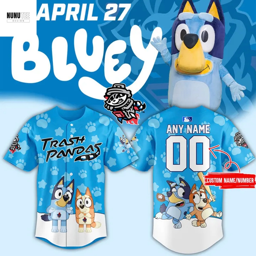 Personalized Rocket City Trash Pandas x Bluey 2025 Baseball Jersey